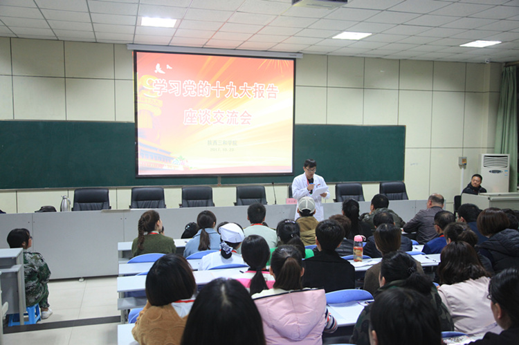 10月24日晚6时许,学校党支部组织全体教职员工、党员、学生干部代表在演讲厅对十九大报告进行专题学习交流,本次学习交流会由学校党支部副书记杨宏民主持,学校党支部书记、董事长王建民参加此次交流会并讲话。院领导先带领大家回顾了十九大报告的重要内容,然后引导大家结合自身教育工作实际和面临的形势,层层深入剖析,展开讨论。