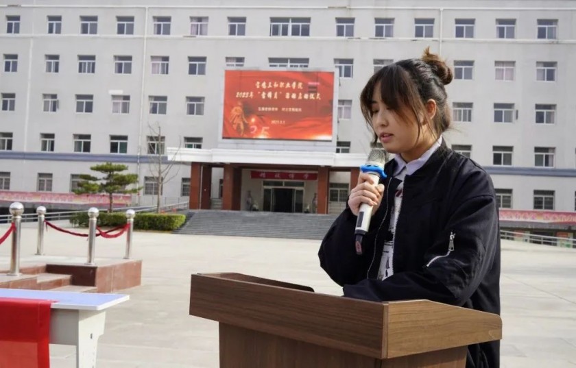 学生会年婷同学通过国旗下宣读“学雷锋”倡议书,倡导学生传承雷锋精神,把学雷锋活动融入日常生活,人人学雷锋、天天学雷锋、时时有雷锋,争当新时代“追锋”青年。