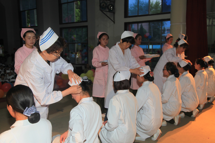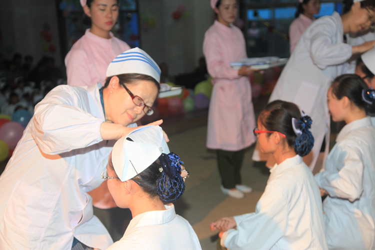 5月12日晚7时许庆祝晚会在庄严神圣的“授帽仪式”中拉开帷幕,在学校大礼堂,三和教育集团董事长王建民同志携中层以上领导和护理学校全体师生欢聚一堂,共同庆祝5.12国际护士节。 副院长周淑琴女士发表致辞,她代表学校领导向平凡岗位上辛勤工作和无私奉献的老师们表示最崇高的敬意,向怀揣“天使”梦想的学生表示节日的祝贺。希望白衣天使们能向现代护理事业的创始人南丁格尔无私奉献,努力践行“燃烧自己、照亮别人”的人道主义精神。全心全意为人民服务为宗旨,履行护士的天职,以自己的真心、爱心、责任心对待未来每一位病人,激励同学们要塑造高尚的职业道德修养,努力学习专业知识,掌握过硬的临床技能,做一名合格的护理人才。