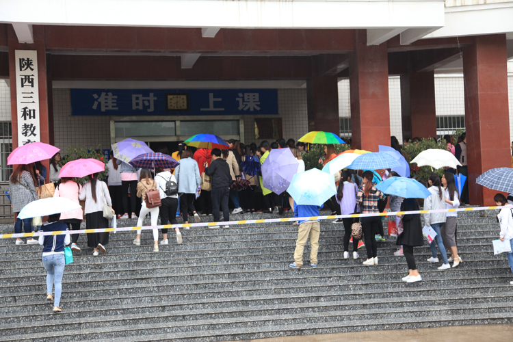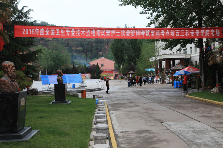 虽然天公不作美,下起了蒙蒙细雨,但也不乏抵挡考场上的热情,来自宝鸡市共计2615名考生投入了紧张的考试当中。 全国卫生专业技术资格暨护士执业资格考试陕西三和职业中等专业学校考场自2010年起已经是第七年,为了筹备此次全国性的考试,全院师生高度重视,合理安排,各项服务工作准备充分,师生齐动员从、考试、午餐、休息都作了细致的安排,团委学生会特意组织了80名志愿者在校园的各个路口给考生引导,操场、草坪、路口鲜艳的考场标志牌给考生提供服务,学校不仅给考生中午提供五元一荤两素一汤及米饭不限量的快餐、五处保温桶开水供应点,还摆放了上千条小凳给考生中午临休,处处体现对考生无微不至的服务。本次考试,共计设立了67个纸笔试室,4个机考试室,共计2615名考生,省卫计委、市卫计局领导在详细巡查完考场后对陕西三和职业中等专业学校考场给予了高度的赞扬。