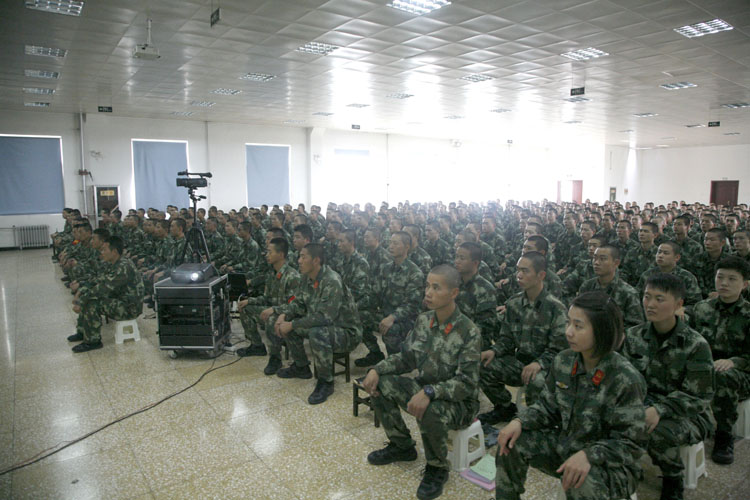 在武警宝鸡支队礼堂,面对500余名新训战士,王建民从自己参军、退伍、创业以来的坎坷历程娓娓道来,下面的战士也听得心潮澎湃。
