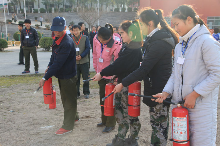 随后,参会人员在学校北足球场参加了消防演练,分步进行了干粉灭火器实际操作、消防防化服的穿戴方法及使用注意事项、消防水带的铺设、火灾逃生等项目。每位参加人员都情绪饱满、积极参与、沉着冷静,最终有序完成了灭火任务。