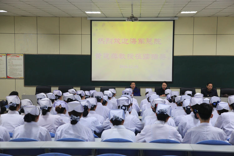 12月19日,中国人民解放军海军总医院总护士长、护理首席专家黄建萍教授莅临我校指导工作,并对我校优秀护理学生进行实习生选拔,学校副院长张玉顺、张文刚陪同。
