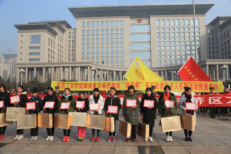 2016年12月31日上午,宝鸡市第五届 “体彩杯”关天经济区万人长跑暨2017年宝鸡市全民健身活动正式拉开帷幕。陕西三和职业中等专业学校田径队也以长跑的方式和市民迎接2017年的到来,经过紧张激烈的比赛角逐,三和选手分别获得万人长跑女子组第2、5、13、19、22、30名;男子组分别获得第1、3、9、11、14、18名。