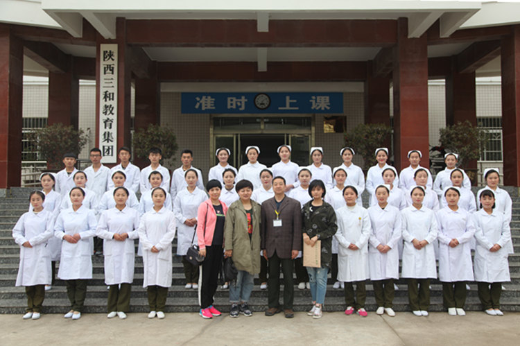 陕西三和职业中等专业学校建校24年来,已经与全国各地的上百家部队医院建立起了良好的合作关系,已累计为社会输送各类实用型人才近5万人,学校以为部队委托培训护士为特色,实行军事化封闭式管理,培养的学生守纪律,能吃苦,专业能力强,受到社会各界的认可的好评。在岗位上也涌现出一大批优秀的护理人才,为护理事业做出了应有的贡献。经过2小时的层层选拔,最终35名学员通过选聘,即将启程开启人生的护理职业生涯。最后武警新疆总队医院的领导和35名选聘上的学员,在多媒体大楼前合影留念。