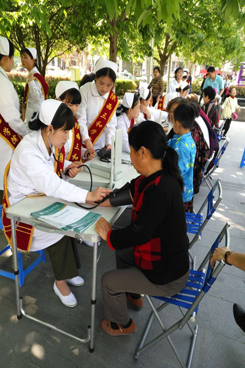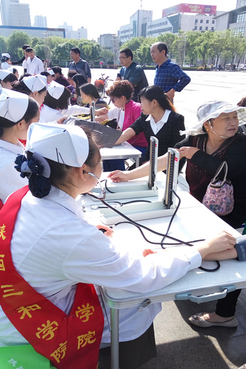 五一假期,我校护理学校专业学生在市区公园、广场摆摊设点,为宝鸡市民免费提供测血压、健康咨询、健康宣传等服务,吸引了不少市民前来参与,深受广大市民欢迎。据了解,本次义诊活动周期为3天,学校每天派50余名护理专业志愿者学生,分成多组小分队,在宝鸡市的公园、广场为市民提供义诊服务,本次义诊一是回馈全院师生员工对护理专业建设的大力支持和帮助,二是为了贯彻学校实践教学的教育方针,使同学们在实践中积累经验,为以后走上工作岗位做好准备。