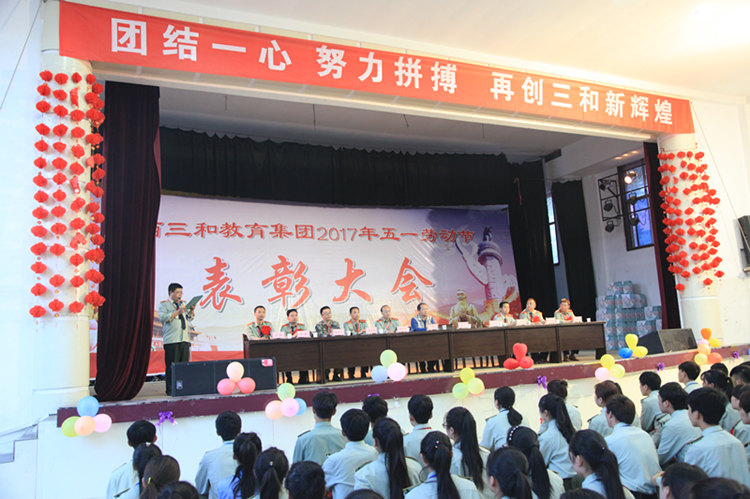 2017年5月1日晚7时许,学校在大礼堂隆重召开2017年劳动模范表彰大会。本次表彰大会表彰奖励了学校教职工劳动模范和优秀学生个人。