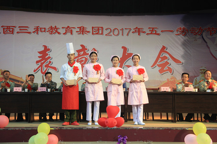 表彰大会由护理学校副院长张文刚主持,学校党支部副书记杨宏民宣读了学校关于表彰陕西三和职业中等专业学校“五一”劳动奖章劳模人物的决定,学校领导班子为获奖46人进行了颁奖。随后学校对优秀学生进行了表彰奖励,并激励他们再接再厉努力做得更好,受表彰的学生有院级优秀学生干部、院级优秀学生、技能大赛获奖学生等。表彰大会结束后,学校教职工和大学生艺术团精心为师生准备的节目,在热烈的掌声中拉开帷幕,整场晚会节目精彩纷呈,使得现场掌声连绵不断。晚会最后在一支和谐优美的舞蹈中缓缓落下序幕。