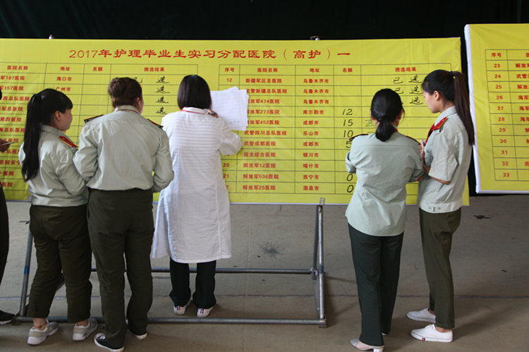 陕西三和职业中等专业学校护理专业自1995年第一期受部队医院委托培训护士以来,至今已为全国两百家部队医院输送大中专护士35000余名,为祖国的护理事业做出了应有的贡献。本届护理专业毕业生的工作分配,是根据学生平时的学业成绩和综合表现来选择医院的,2017届的毕业生即将走向自己的工作岗位,各自奔向全国各地的部队医院开始自己的职业生涯,祝愿这些白衣天使发扬南丁格尔精神,爱岗敬业,无私奉献,用微笑传递真情,真诚帮助身边的每一患者!