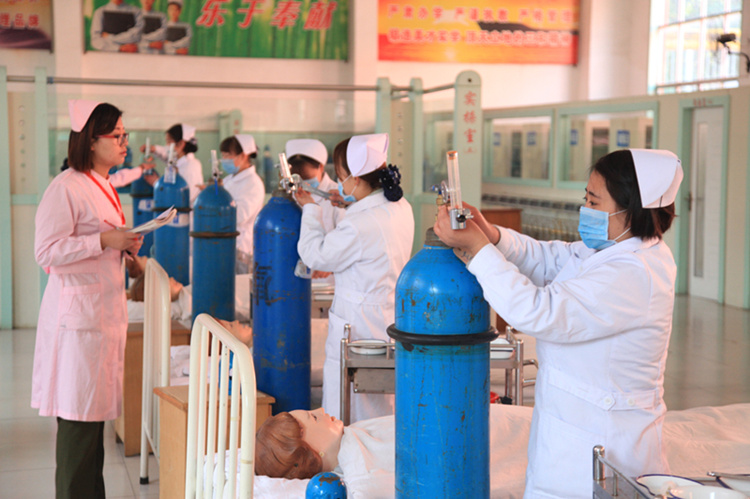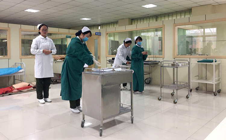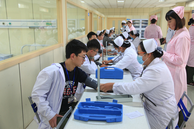 首先拉开比赛序幕的是护理专业的风采,比赛内容包括新生的应知应会对抗赛、静脉输液、心肺复苏术、吸氧法、皮内、皮下、肌肉注射、产前检查、心电图机操作、无菌技术、浅表淋巴检查、全身骨骼识别、测血压、备用床、穿脱手术衣、灌肠法等多项护理操作。她们身着职业装,护士范十足。在技能展示中娴熟的操作一直赢得满堂喝彩。