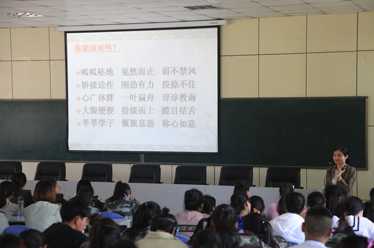 培训会上,两名老师对普通话测试过程中会出现的难点、注意事项,以及普通话水平测试中读单音节、多音节的技巧等,对考生进行了讲解和示范,并和同学们进行互动练习,同学们都表现出了极高的学习激情,积极与老师互动、认真做好笔记。