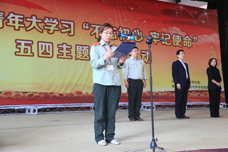本次主题团日活动由学校团委副书记徐君飞主持,出席本次活动领导有团市委班子成员、宝鸡市少先队总辅导员李军、团市委学少部部长许妍 、学校副院长李兰、护理学校副院长张文刚、技术学校主任张旭等,同时1148名团员参加了此次活动。活动在庄严肃穆的国歌声中拉开了序幕;随后大会宣布新成员名单,与会领导向新团员代表颁发了团员证并佩戴团徽;团员朵杰鹏毛带领本次新发展入团学生代表面向团旗,庄严宣誓,正式加入中国共青团;入团介绍人代表周文华宣读《团章》中有关团员义务和权利的条款;接着新团员代表刘文静和老团员代表李雅分别发言;活动第八项表彰了学校先进团支部、优秀团干部和优秀团员。