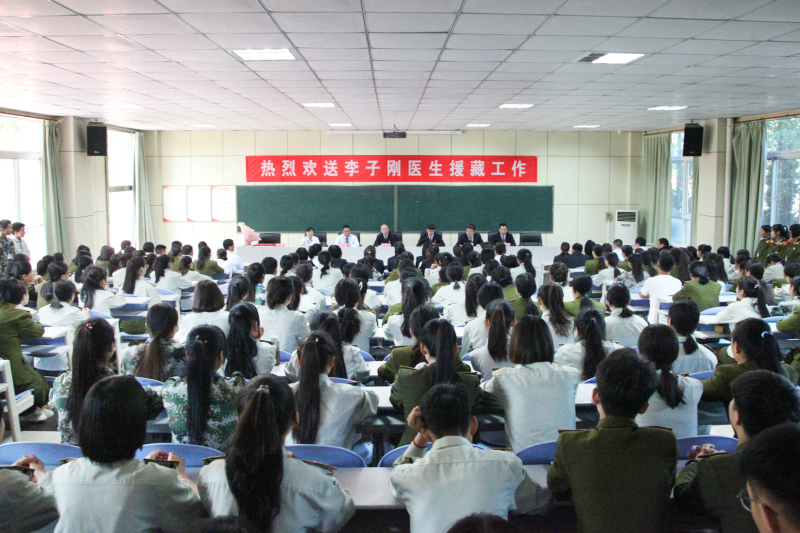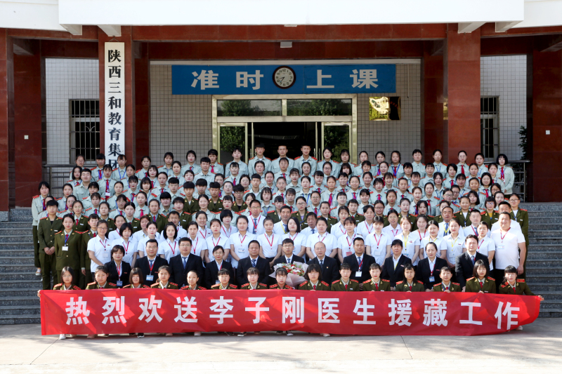 6月3日上午,陕西三和学院师生隆重召开李子刚老师医疗援藏欢送会,学院党政工团领导、全体教职员工和学生干部一起为李子刚老师送行。