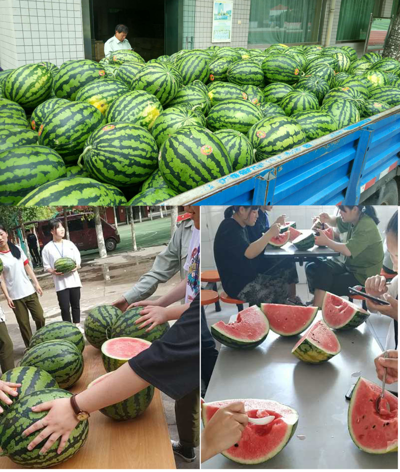 5月31日,学校共购6500斤大西瓜作为端午节福利发放给全体学生,学生每四人分领一个大西瓜,同学们都表示西瓜新鲜红嫩、甘甜可口,并且非常感谢学校的关心!