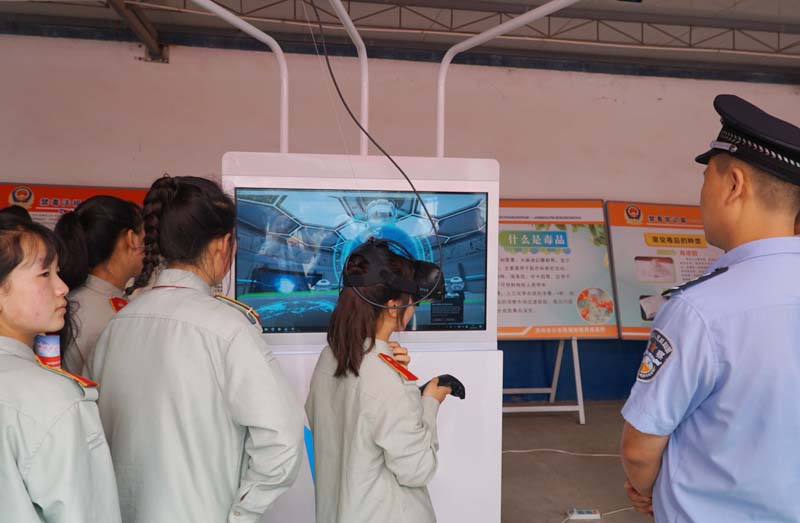 活动现场,同学们认真观看了毒品危害的展板和宣传彩页,并通过戒毒所干警的现场宣讲,同学们基本认识了毒品的分类以及禁毒的法律法规,让毒品的危害家喻户晓、人人皆知。在国际禁毒日文艺汇演结束后,学生们在戒毒所干警的组织下参观了强制隔离戒毒人员宿舍内务、强制隔离戒毒人员心理咨询室和学习场所,干警们热情地与师生交流,回答学生提出的问题。