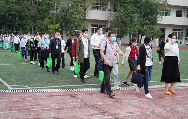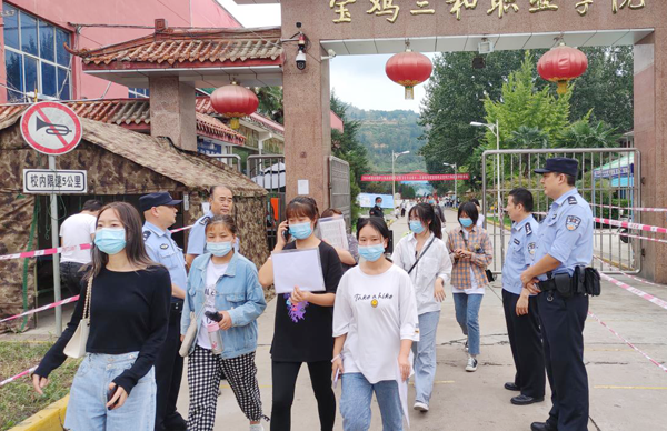今年因受疫情影响,考生进校门前必须出示本人14天内的安全行程码,体温测量合格后,方可验证身份证和准考证进场,学校在纸考、机考考场附近还设立了临时备用考场。