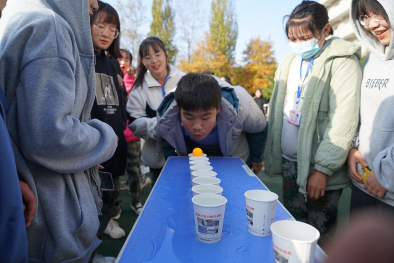 本届趣味运动会共有跳绳、十人十一足、摇呼啦圈、吹乒乓球、抢宝藏、多人积木、乒乓球接力赛等7个项目。比赛还未开始,运动场上已经热闹了起来,明媚的阳光倾洒在运动场上,为运动会现场增添了一份温暖。