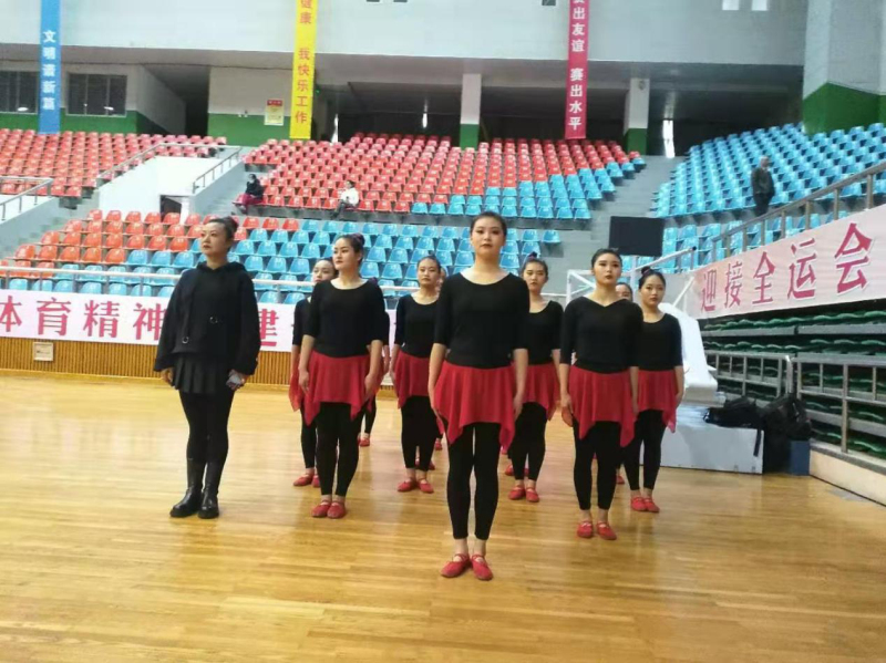 本次活动学院领导高度重视,指派经验丰富、多年从事舞蹈教学工作的教师高菲进行教学,选拔了15名同学并带队参赛。同学们朝气蓬勃,精神抖擞,刻苦训练,志在必得。