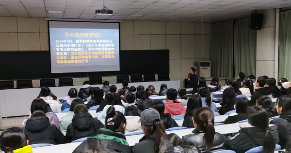 近年来,校园欺凌事件在各地层出不穷,暴力程度令人震惊,严重伤害了学生的身心健康。为培养学生自我保护能力,提高学生自我约束力,树立“知法、遵法、维法”意识,促进学生健康成长,预防校园欺凌事件发生,共同构建和谐的校园环境,12月29日,学生处王建老师开展了题为“预防校园暴力 防范校园欺凌”的专题讲座,全体学生参加。