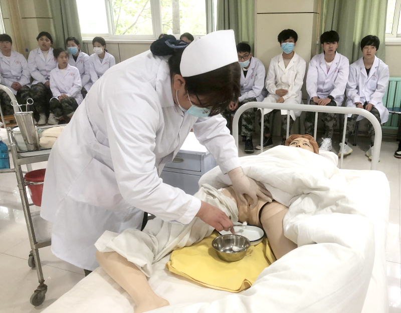 展演中,同学们有条不紊的进行着护理操作,动作娴熟敏捷,详细地解释名词用语,操作标准、熟练,每位同学都以最佳的精神状态展现自己的技能风采。本次技能展演护理学生主要展示了测血压、无菌技术、吸氧法的操作,还有即将毕业的学生利用本次展演同时完成了技能实操考核,展演考核的项目主要有生命体征、穿脱隔离衣、口腔护理、皮下、皮内、肌内注射以及导尿、灌肠等15项护理基础操作。
