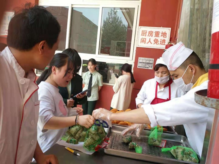农历五月初五,是端午节,在这一天吃粽子是中国人的传统习俗,为了让所有学生在温馨愉悦的氛围中欢度传统节日,学校为学生免费发放暖心粽子和糖糕。