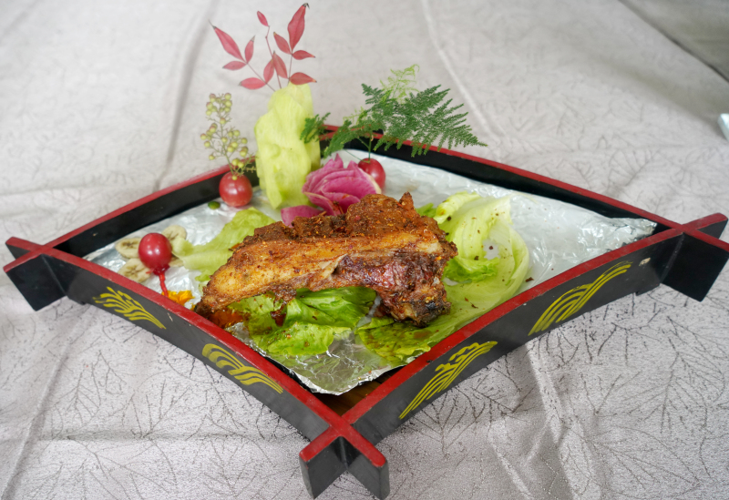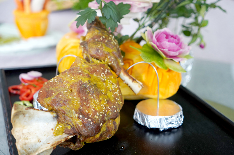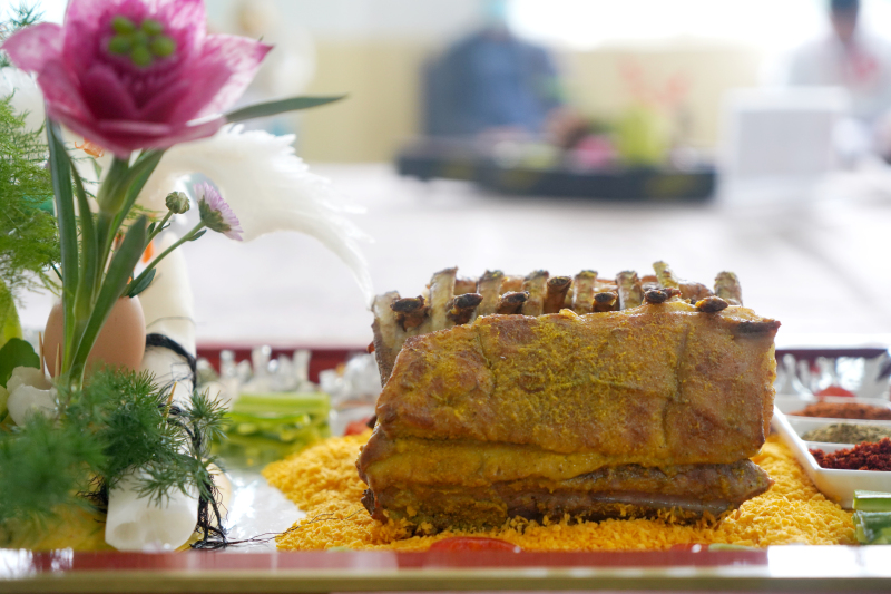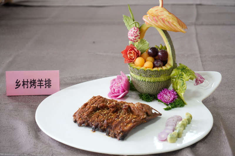 本次中式烹调师大赛主要以“羊肉烘焙”为主题,百位选手在场上竞技时,场馆内却飘出了一阵阵浓郁的羊肉串味道。“中式烹饪师(羊肉烘烤)”项目技能大赛的选手们,在紧张地忙着烤羊肉串、烤羊排,伴随着烤箱中的“滋啦滋啦”声,阵阵香味飘散开来。选手们从烤箱中取出羊肉,刷油、撒调料,继续烘烤。