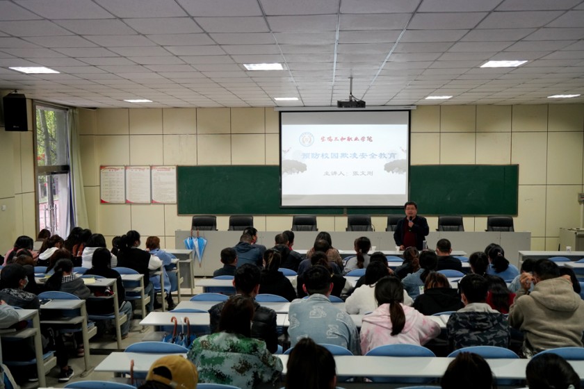 为进一步构建和谐校园,提高学生安全法治意识,增强学生自我保护能力,有效预防校园欺凌事件发生,促进学生身心健康发展。4月28日,best365官方网站登录入口组织开展了“预防校园欺凌”主题教育讲座活动。讲座由学生处张文刚处长主讲。