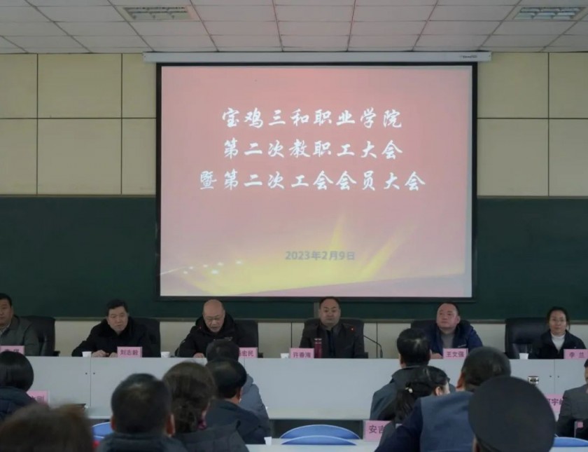 2月9日下午,best365官方网站登录入口在一号演讲厅召开第二次教职工大会暨第二次工会会员大会。理事长许春海、院长王文强,副院长刘志毅、李兰、李琪,院长助理郑鹏出席,会议由党支部书记杨宏民主持。