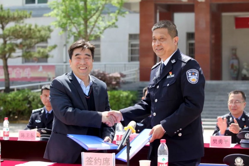 张院长与宝鸡强制隔离戒毒所赵所长签订“禁毒教育”共建单位共建协议,并共同为“禁毒教育共建单位”揭牌。