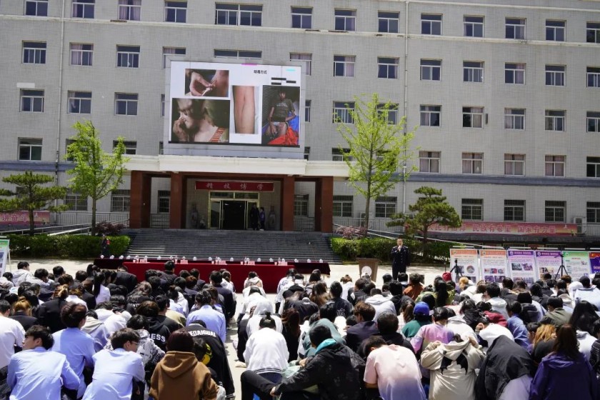 签约仪式结束后,由强制隔离戒毒所教育矫正中心主任樊永平老师给全体师生带来了一场精彩绝伦的禁毒知识讲座。樊老师采用图片、视频展示的形式,运用大量惊人的数据和生动的新闻案例,重点讲解了我国目前的毒情形势、毒品的定义、特征、种类,以及大学生的吸毒风险等知识;深入剖析了毒品,特别是新型毒品的危害,即:危害社会,祸及家庭,毁灭自己;普及禁毒相关法律条文;告诫学生要学会识毒、拒毒,平时谨慎交友,不涉足人员复杂的场所,不滥用药品,不借毒消愁,不尝试新鲜。
