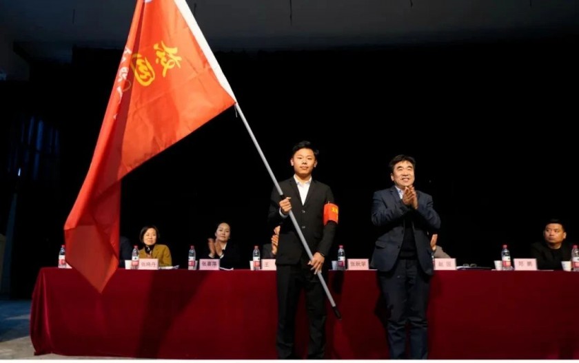 张秋学院长给文明纠察队授旗