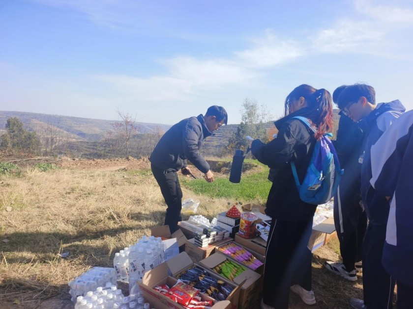 山路十八弯,虽然路程较为陡峭,但在沿途中学院也贴心的为同学们准备了补给点,为同学们进行能量和体力的补充。