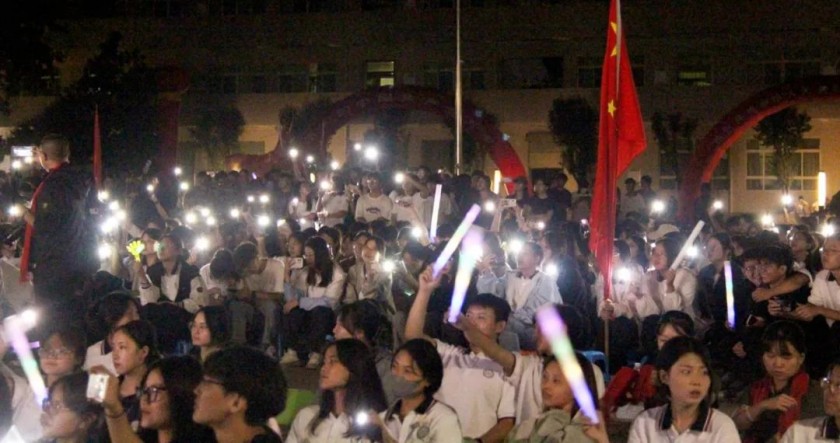 紧接着,全体师生共同欣赏了来自宝鸡的“大可igyes乐队”带来的精彩演出。欢快的歌声使整个校园一片沸腾,同学们的掌声此起彼伏,现场气氛被推向了高潮。