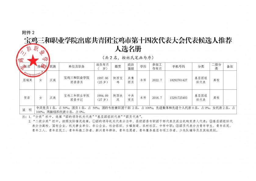 关于出席共青团宝鸡市第14次代表大会代表候选人推荐的公示