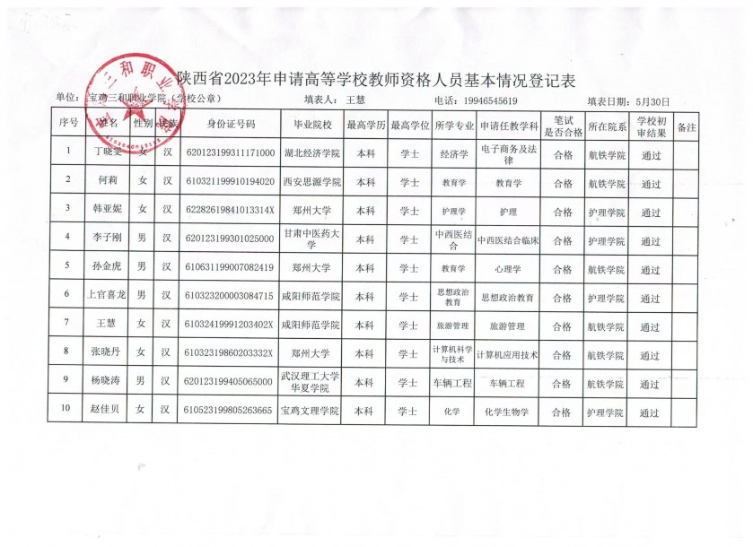 关于陕西省2023年申请高等学校教师资格人员基本情况登记表